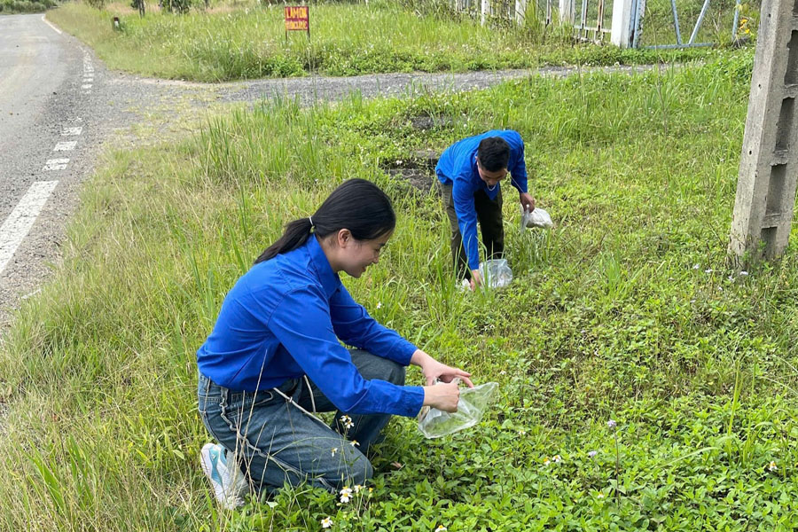 Đoàn viên cơ sở thu gom rác thải tại tuyến đường nơi đơn vị đứng chân